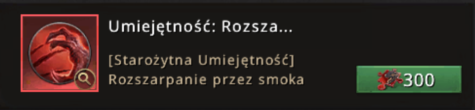 Atrybuty strategiczne: Gdy smok z tą umiejętnością zostanie wystawiony, każdy 5 atak wykonany przez oddziały ma 20% szans na wywołanie Krwawienia u wroga (wsp. obrażeń: 10 na 3 sek. |
