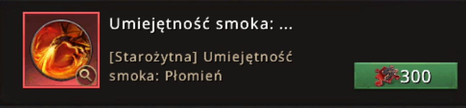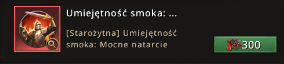 Atrybuty strategiczne: Gdy smok z tą umiejętnością został wystawiony, obrażenia od umiejętności zadawane przez towarzyszące mu oddziały zostają zwiększone o 0,5%. |