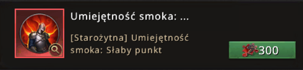 Dla kogoPospolity skil - szkoda na niego tracić puzzle - chyba że mamy już wszystkie inne. A przy okazji widać jakie "kwiatki" zdarząją się w GOT podczas tłumaczenia (Na zdjęciu w tytule jest "Premia do ataku włó...czników", |